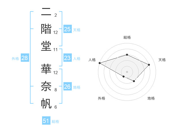 二階堂 華奈帆さんを姓名の画数から五運を鑑定
