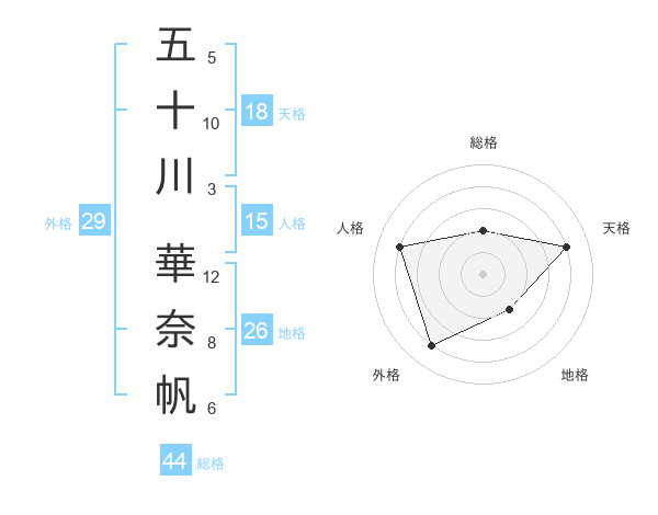 五十川 華奈帆さんを姓名の画数から五運を鑑定