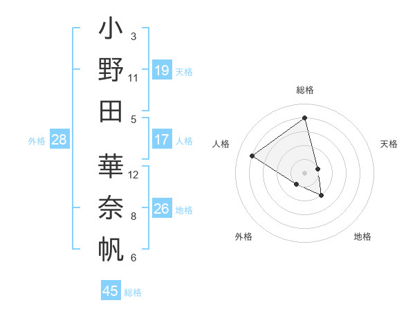 小野田 華奈帆さんの総格は45画の4点!