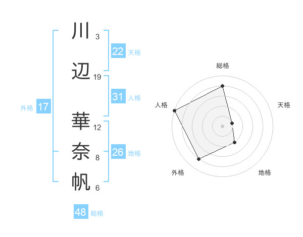 川辺 華奈帆さんを姓名の画数から五運を鑑定