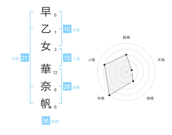 早乙女 華奈帆さんの天格は10画の1点!