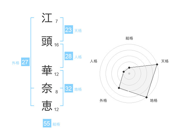 江頭 華奈恵さんを姓名の画数から五運を鑑定