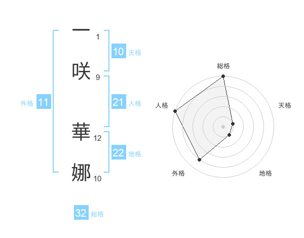 一咲 華娜さんの人格は21画の5点!
