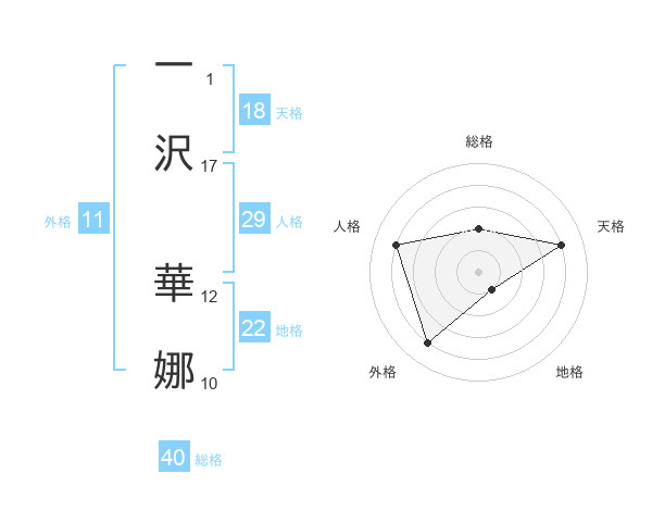 一沢 華娜さんを姓名の画数から五運を鑑定