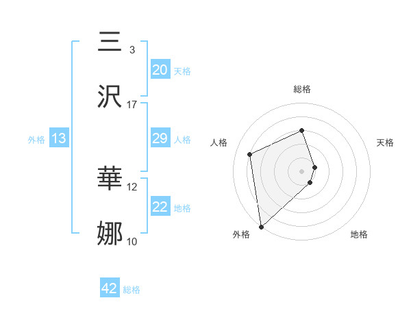 三沢 華娜さんを姓名の画数から五運を鑑定