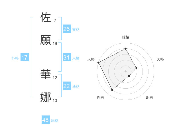 佐願 華娜さんを姓名の画数から五運を鑑定