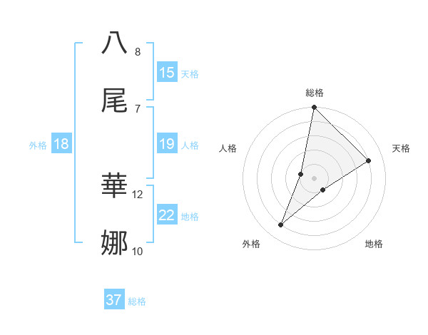 八尾 華娜さんの地格は22画の1点!