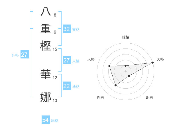 八重樫 華娜さんの天格は32画の5点!