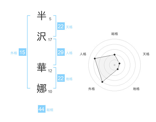 半沢 華娜さんの地格は22画の1点!