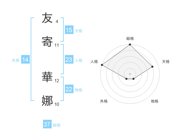 友寄 華娜さんの総格は37画の5点!