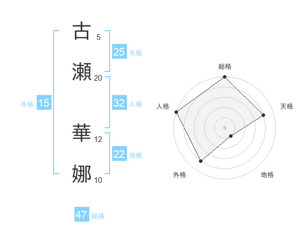 古瀬 華娜さんを姓名の画数から五運を鑑定