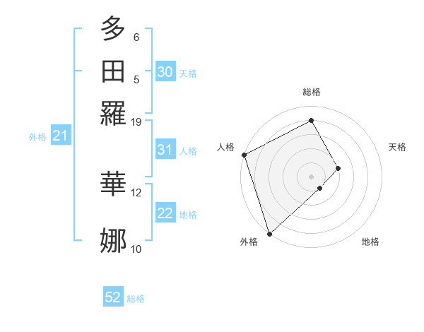 多田羅 華娜さんの総格は52画の4点!