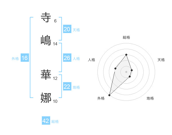 寺嶋 華娜さんを姓名の画数から五運を鑑定