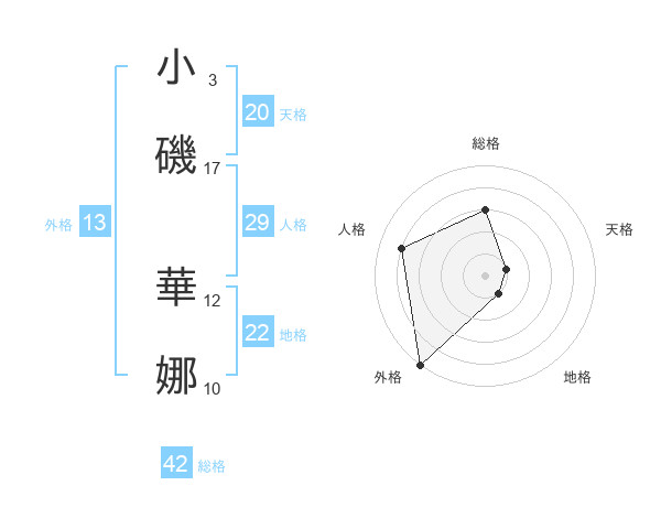 小磯 華娜さんの外格は13画の5点!