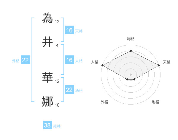 為井 華娜さんの総格は38画の4点!