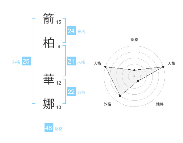 箭柏 華娜さんの天格は24画の5点!