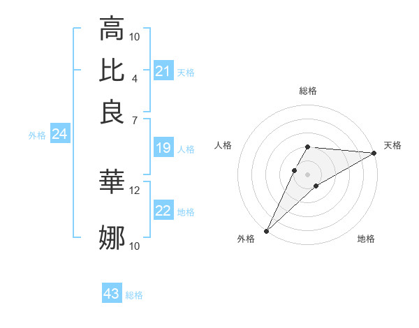 高比良 華娜さんの天格は21画の5点!