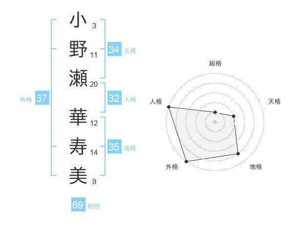 小野瀬 華寿美さんを姓名の画数から五運を鑑定