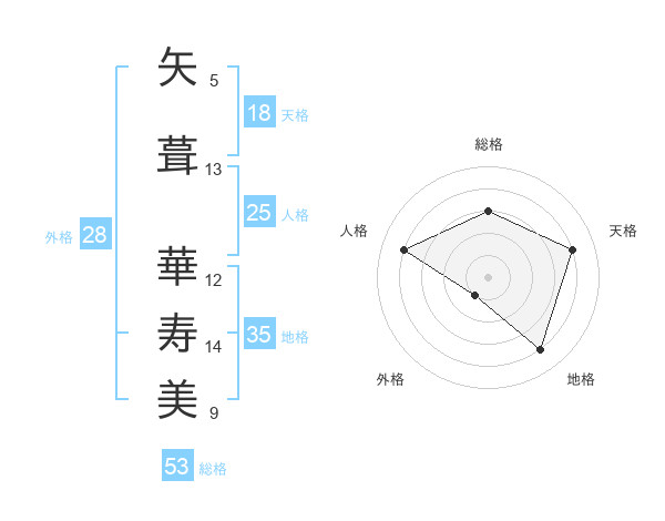矢葺 華寿美さんの総格は53画の3点!