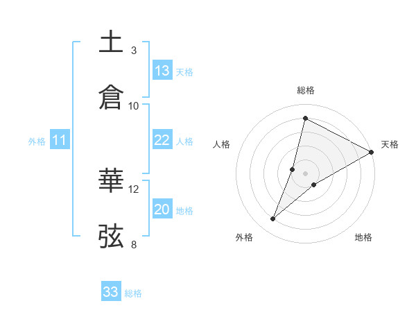 土倉 華弦さんを姓名の画数から五運を鑑定