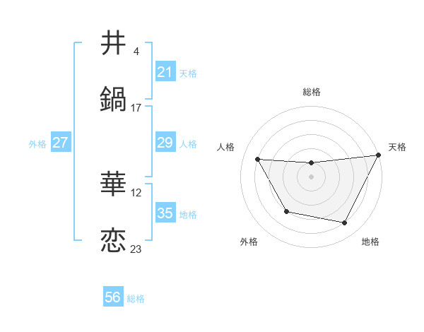 井鍋 華恋さんを姓名の画数から五運を鑑定