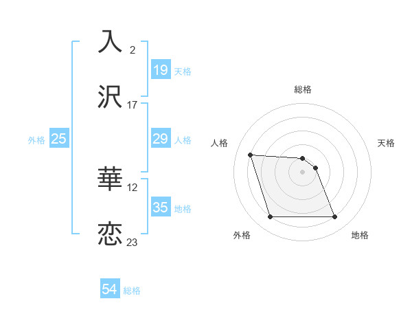 入沢 華恋さんを姓名の画数から五運を鑑定