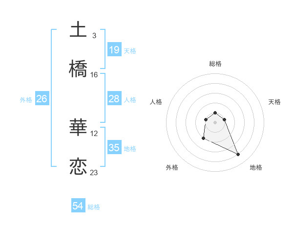 土橋 華恋さんを姓名の画数から五運を鑑定