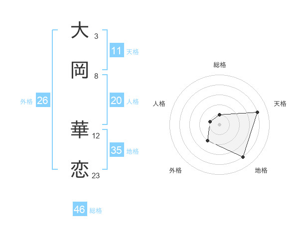 大岡 華恋さんを姓名の画数から五運を鑑定