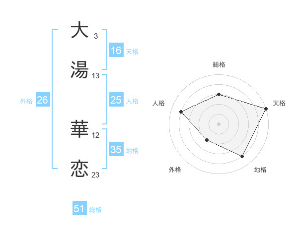 大湯 華恋さんを姓名の画数から五運を鑑定