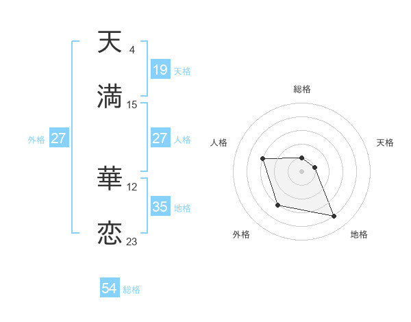 天満 華恋さんの総格は54画の1点!
