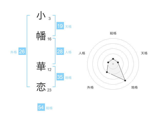 小幡 華恋さんの総格は54画の1点!