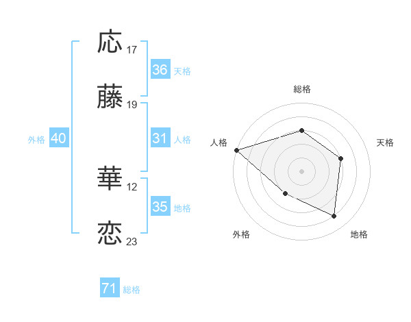 応藤 華恋さんの総格は71画の3点!