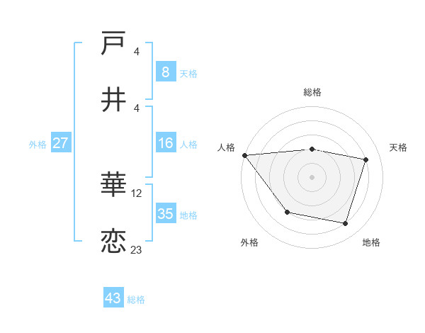 戸井 華恋さんを姓名の画数から五運を鑑定