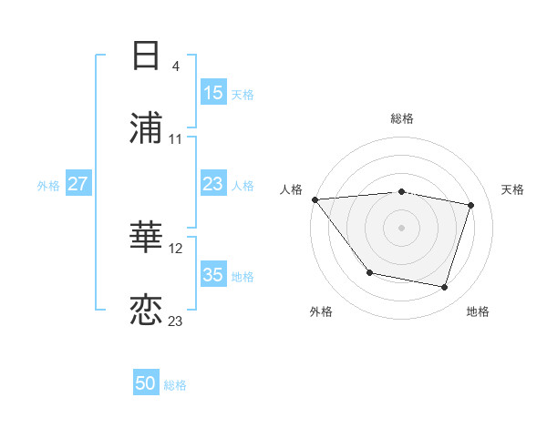 日浦 華恋さんを姓名の画数から五運を鑑定