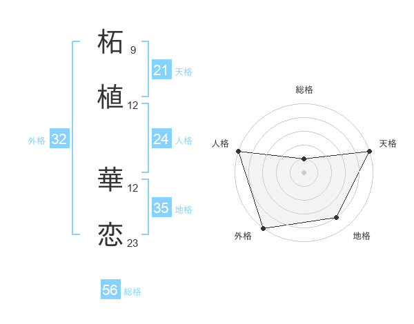 柘植 華恋さんの外格は32画の5点!