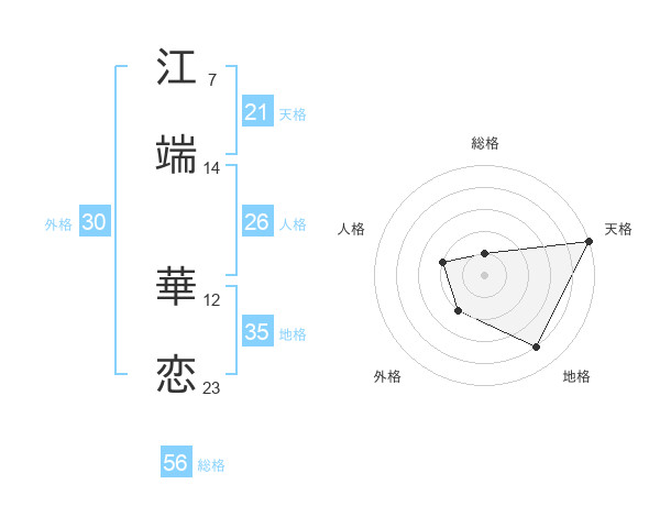 江端 華恋さんの天格は21画の5点!