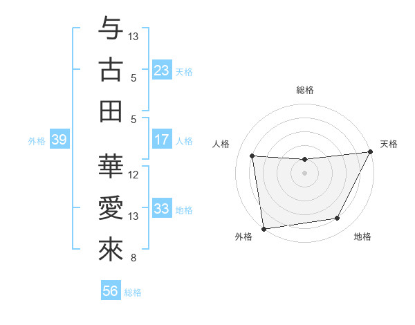 与古田 華愛來さんを姓名の画数から五運を鑑定