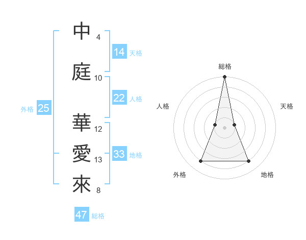 中庭 華愛來さんを姓名の画数から五運を鑑定