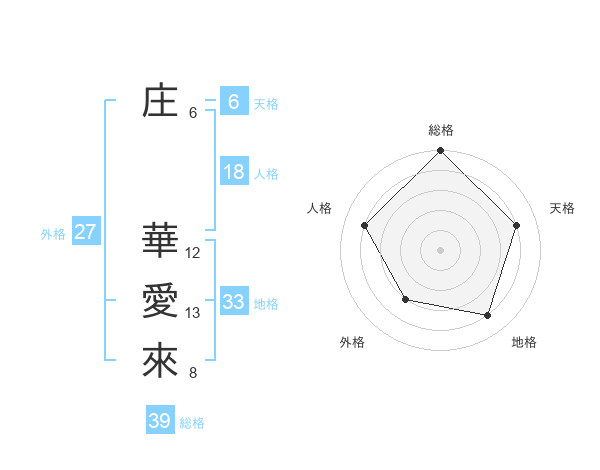 庄 華愛來さんの総格は39画の5点!