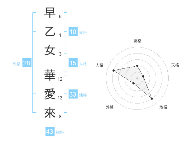 早乙女 華愛來さんを姓名の画数から五運を鑑定