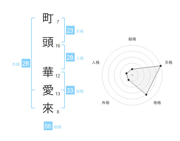 町頭 華愛來さんを姓名の画数から五運を鑑定