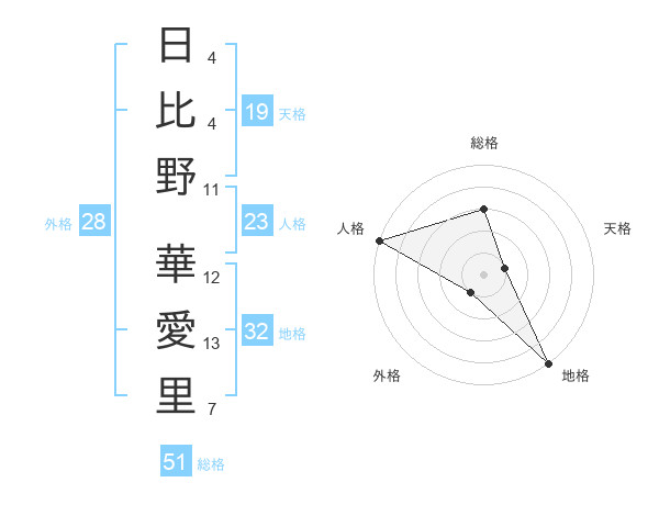 日比野 華愛里さんの総格は51画の3点