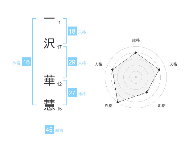 一沢 華慧さんの総格は45画の4点