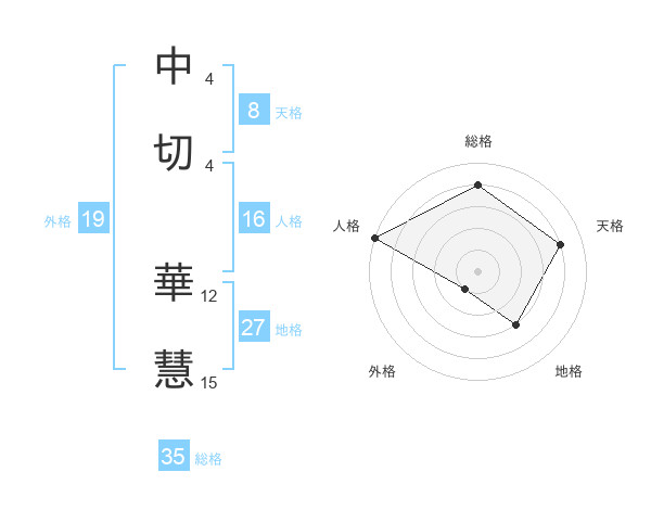 中切 華慧さんの総格は35画の4点!