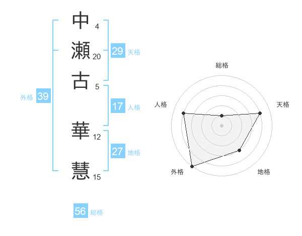 中瀬古 華慧さんの外格は39画の5点!