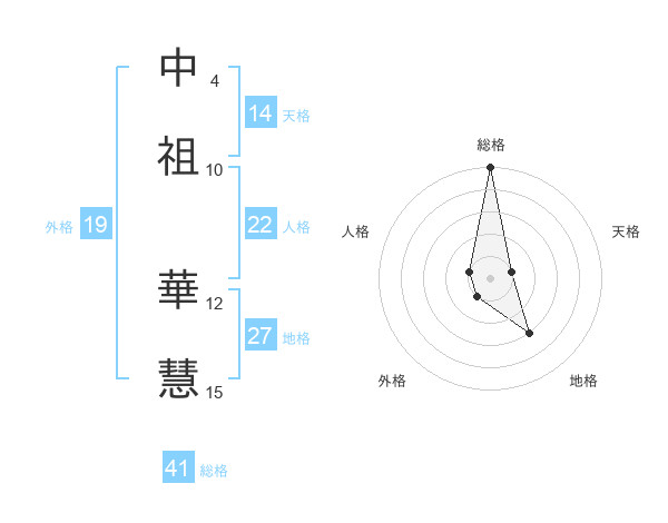 中祖 華慧さんを姓名の画数から五運を鑑定