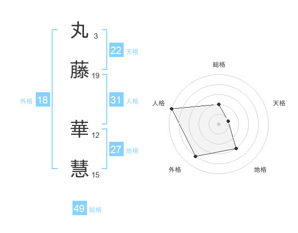 丸藤 華慧さんの総格は49画の2点!