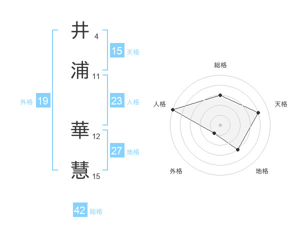 井浦 華慧さんの総格は42画の3点!