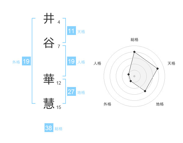 井谷 華慧さんの総格は38画の4点!