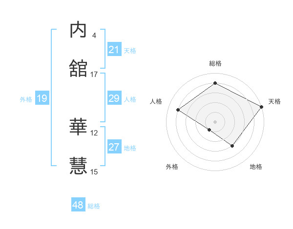 内舘 華慧さんを姓名の画数から五運を鑑定